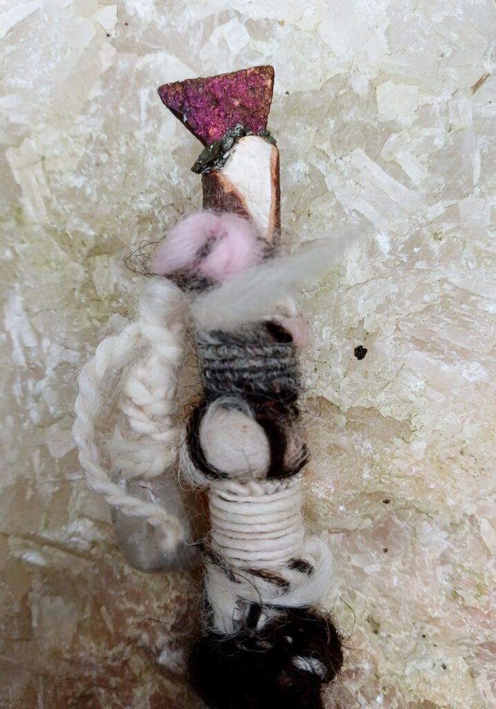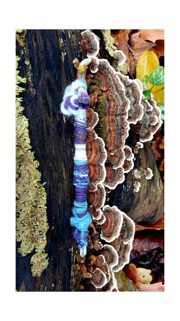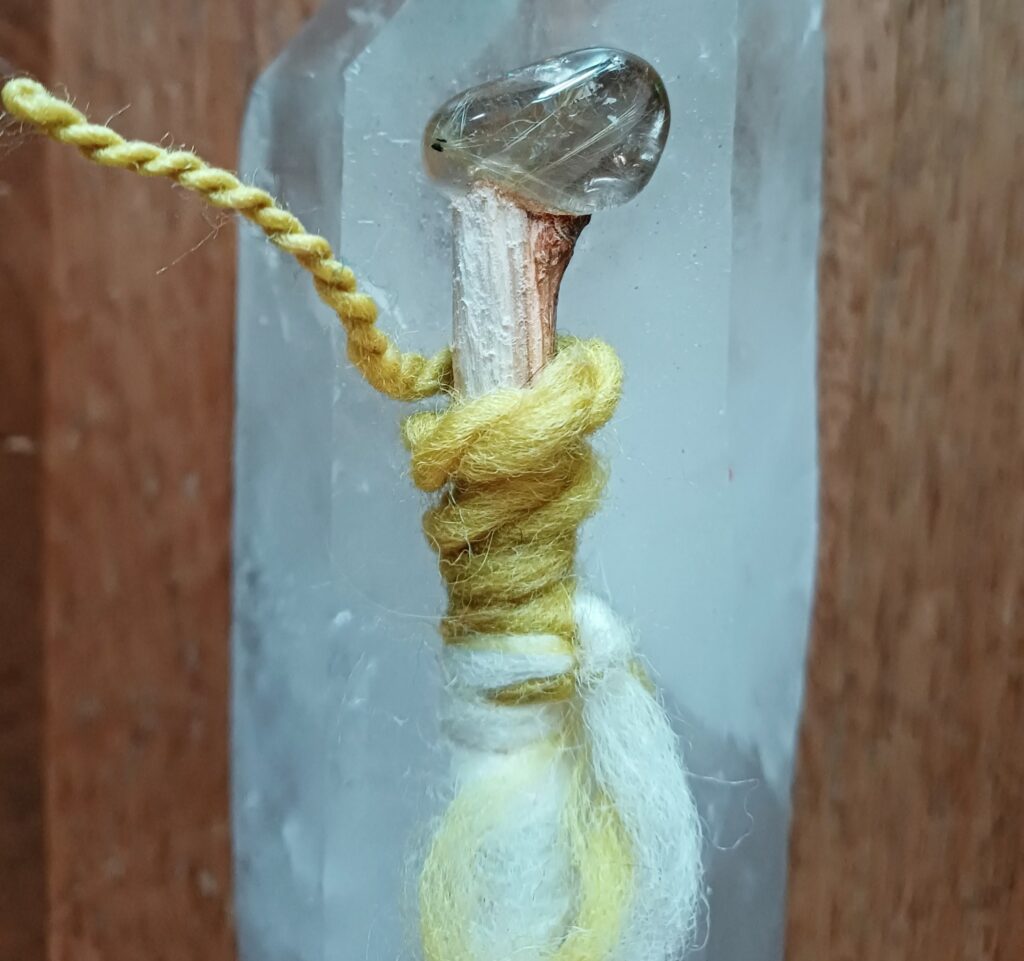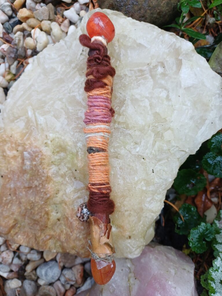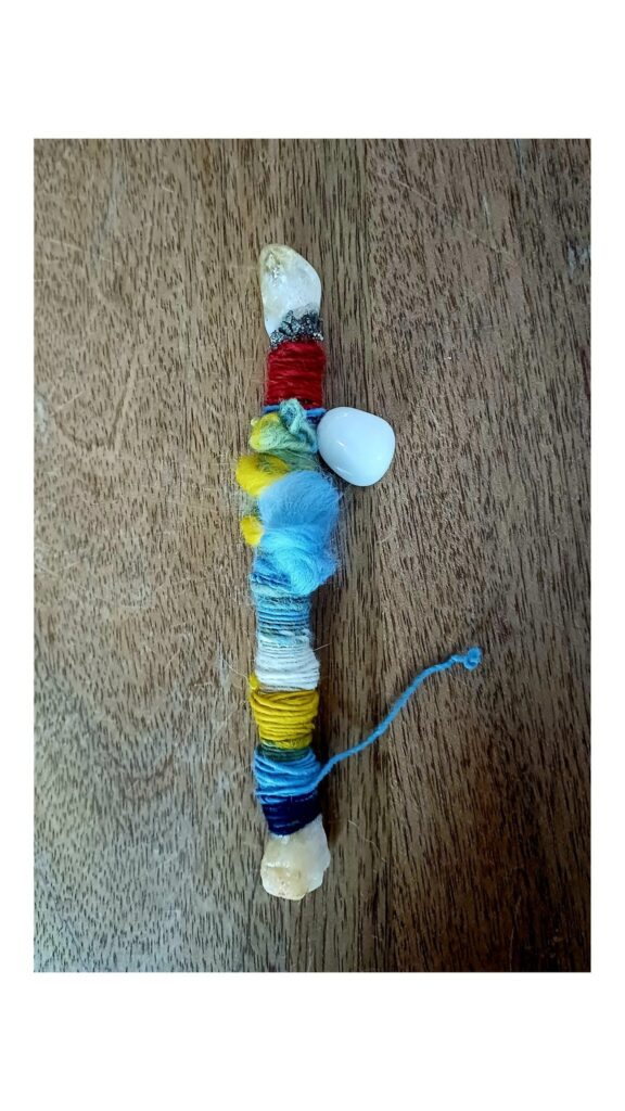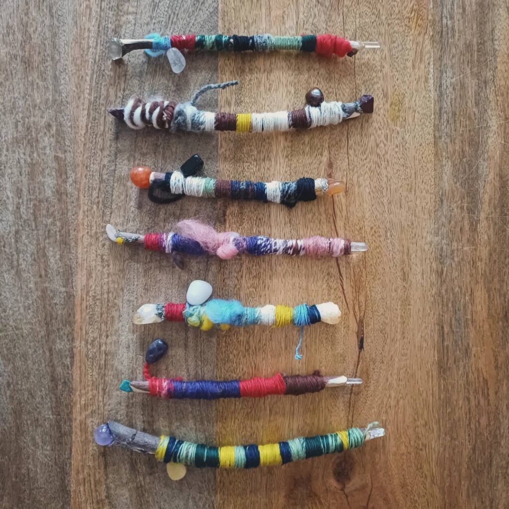 Iedere dag wikkel ik het draad om een staf heen die deze dag van de week representeert.